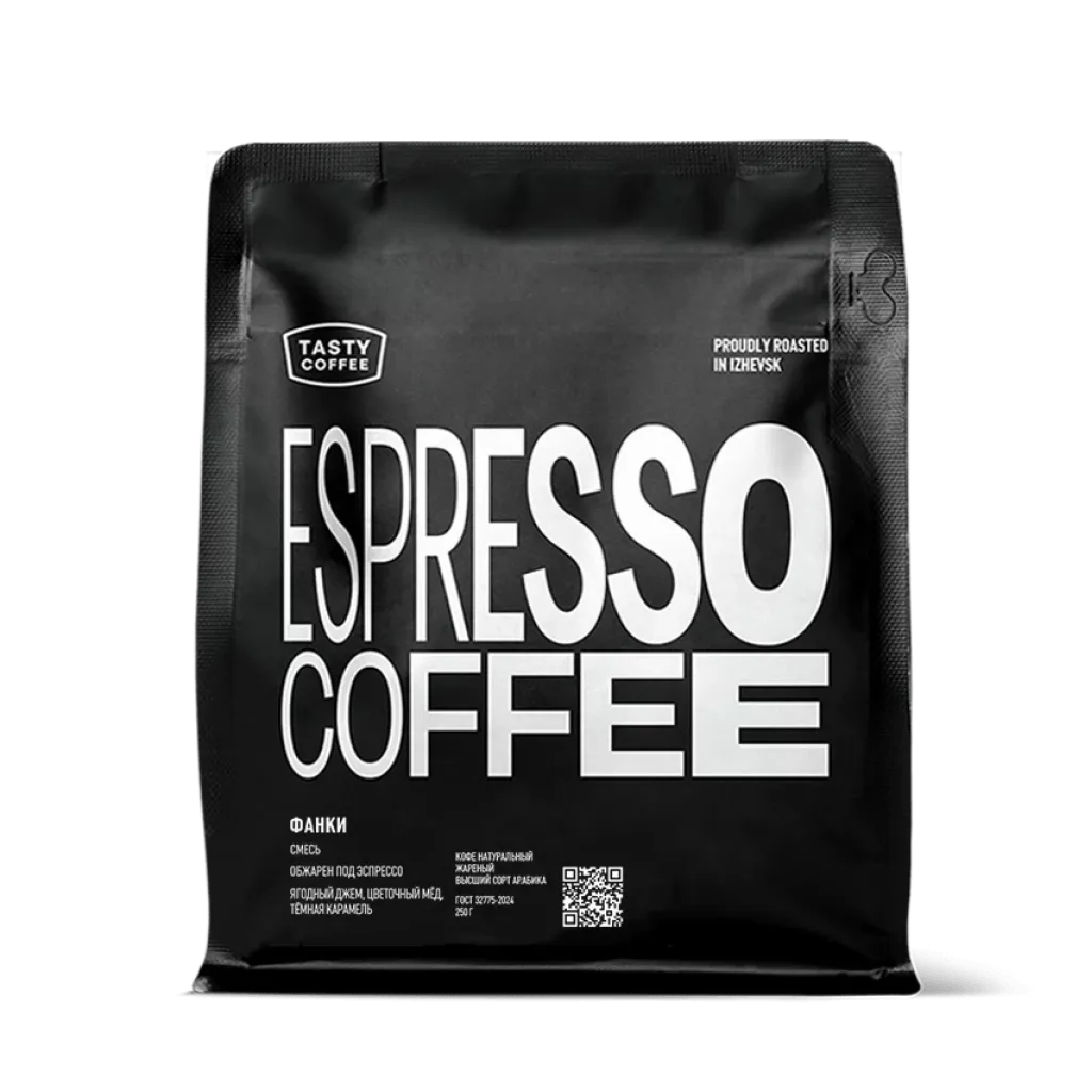 Яркий кофе Tasty Coffee Фанки — смесь Бразилии и Эфиопии с необычной «фанки» обработкой. Вкус ягодного джема, цветочного мёда и тёмной карамели делает его идеальным выбором для эспрессо и молочных напитков.