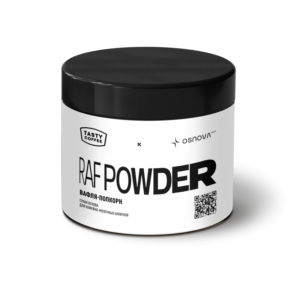 RAF POWDER «Вафля-попкорн» — это сухая основа на кокосовых сливках, которая создаёт уникальный десертный профиль: сладкие вафли из детства + лёгкая солоноватость попкорна. Вам не нужны отдельные сиропы, топпинги и добавки — просто смешайте порошок с молоком, добавьте эспрессо и наслаждайтесь.
